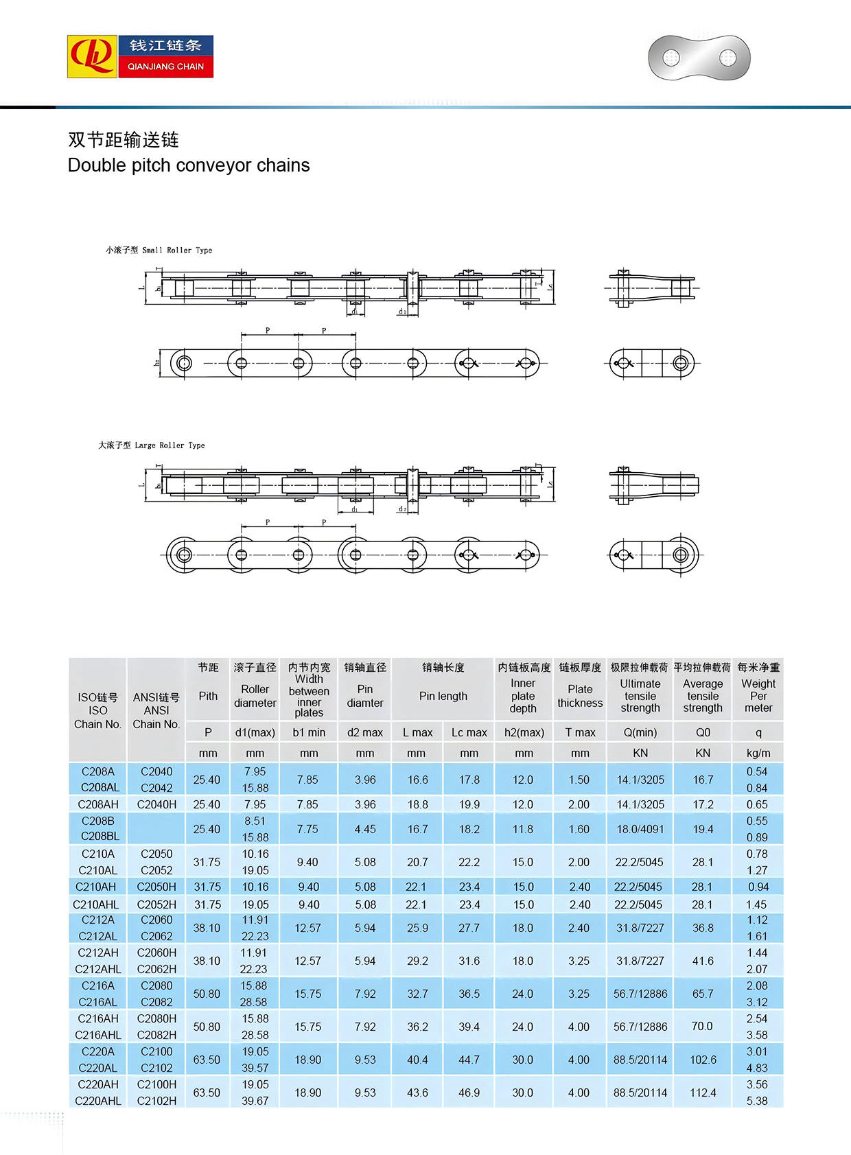 Dobbelt pitch transportørkæder
