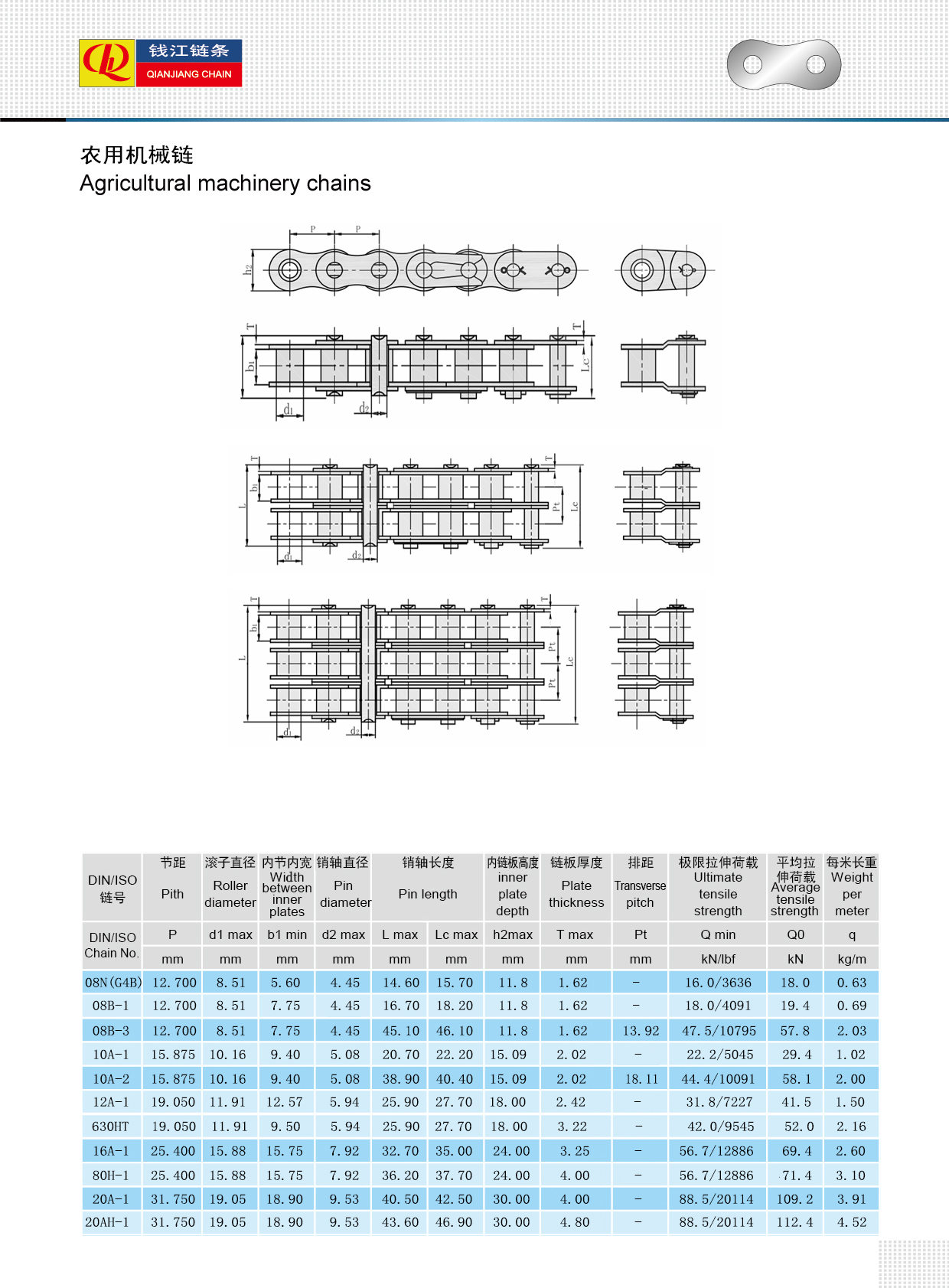 I hjertet af moderne landbrugsudstyr spiller kæder til landbrugsmaskiner en afgørende rolle i at drive produktiviteten. Disse kæder er designet specielt til at modstå arbejdsmiljøerne og tilbyder enestående styrke, pålidelighed og langtidsholdbar ydeevne. Bygget af højkvalitetsstål og konstrueret til hårdt brug, modstår de slid, korrosion og spændinger, hvilket gør dem til det ideelle valg til kontinuerlige, krævende operationer i marken. Uanset om de er i mejetærskere, ballepressere, mejetærskere eller traktorer, sikrer disse kæder jævn og effektiv kraftoverførsel, hvilket reducerer nedetid og vedligeholdelsesomkostninger. Deres robuste konstruktion gør det muligt for dem at håndtere snavs, mudder og høje belastninger uden at gå på kompromis med ydeevnen.