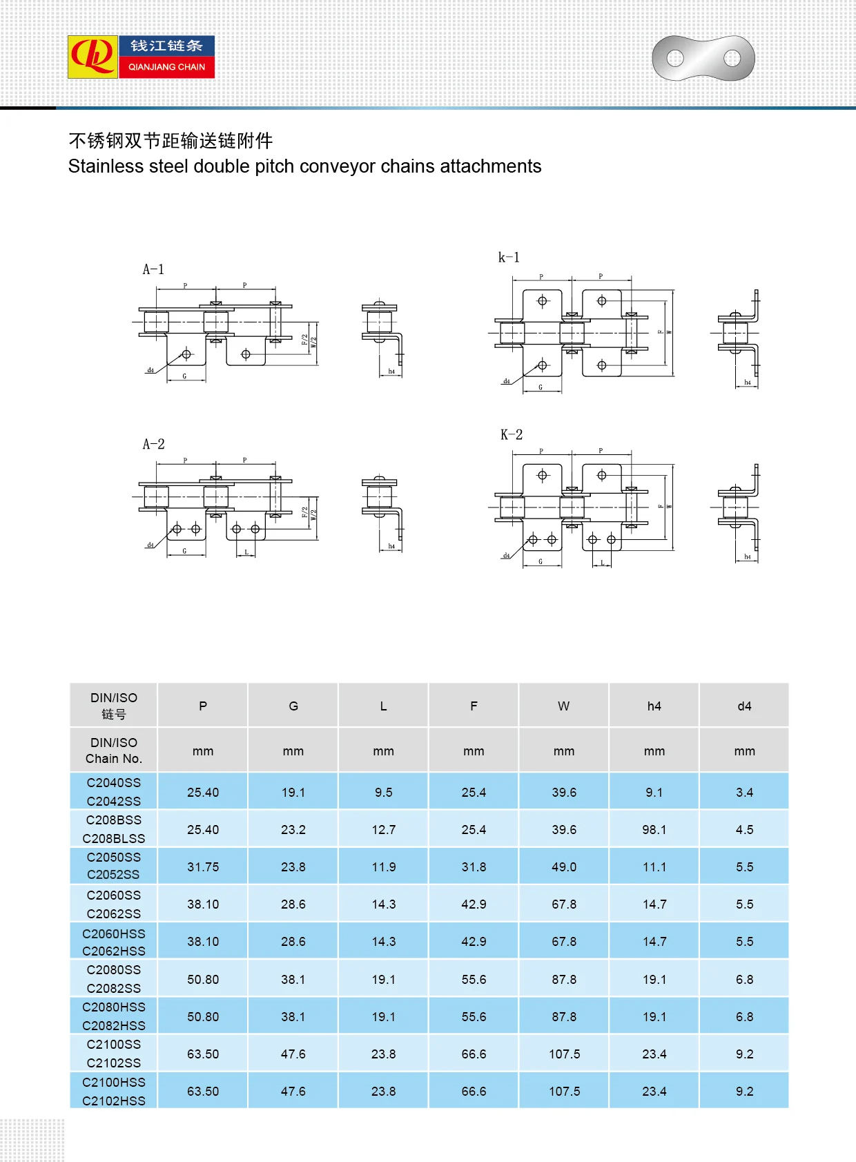 Rustfrit stål dobbelt-pitch transportør kæder vedhæftede filer
