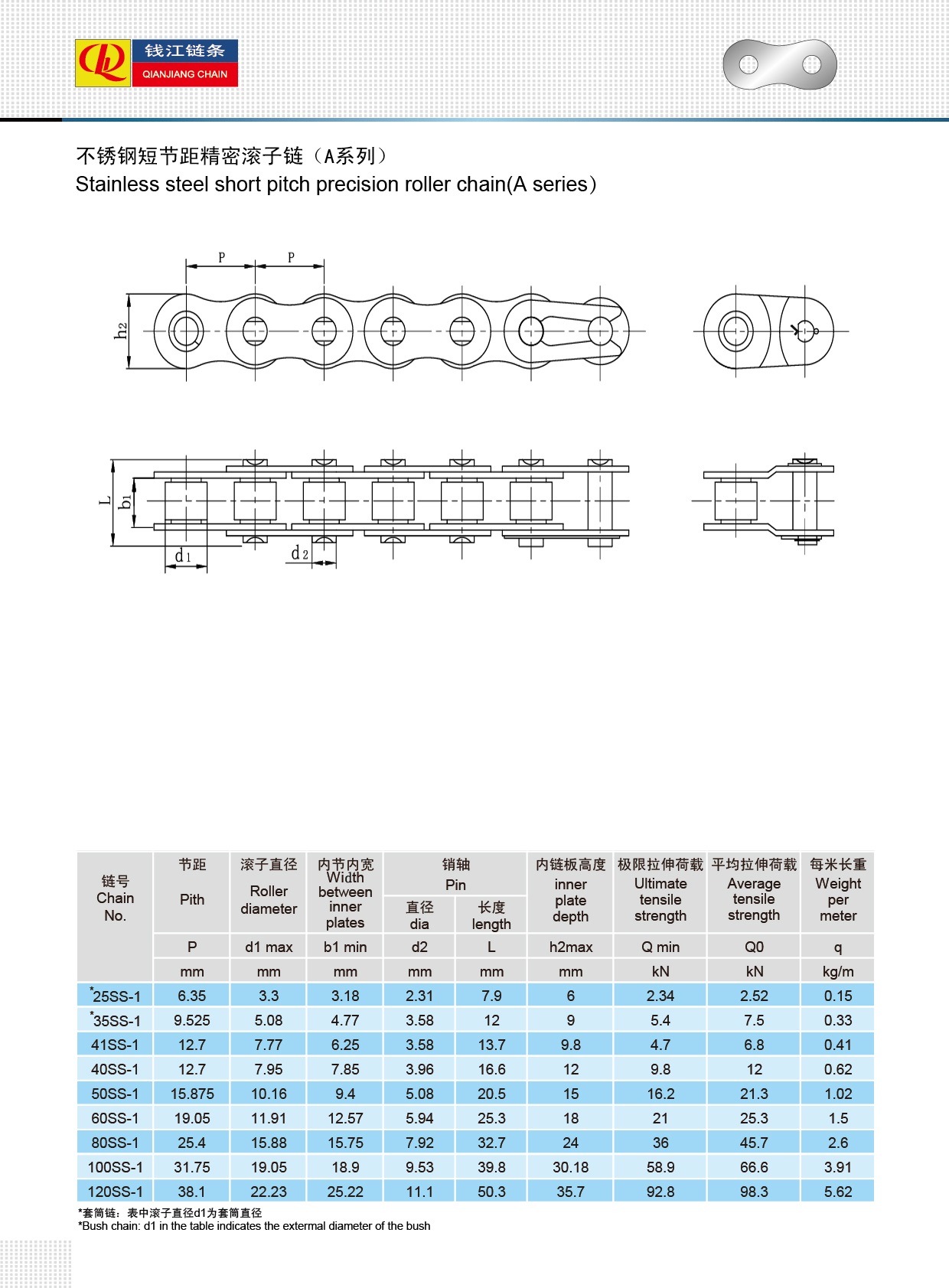 Præcisionsrullekæder i rustfrit stål med kort pitch